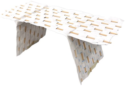 布に木材を内包させることで一つになった柔らかい布と硬い木は互いの動きに制限をかける。